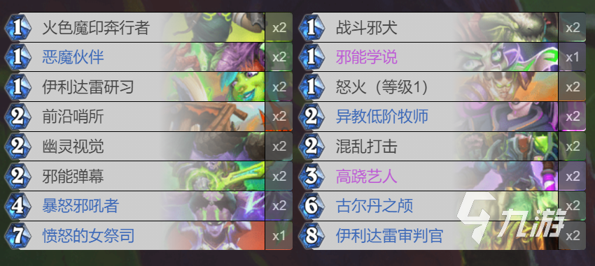 在對(duì)陣慢速卡組時(shí),主要是通過關(guān)鍵的節(jié)奏卡來打中期節(jié)奏,具體的節(jié)奏點(diǎn)是古爾丹之顱,伊利達(dá)雷審判官,憤怒的女祭司。
