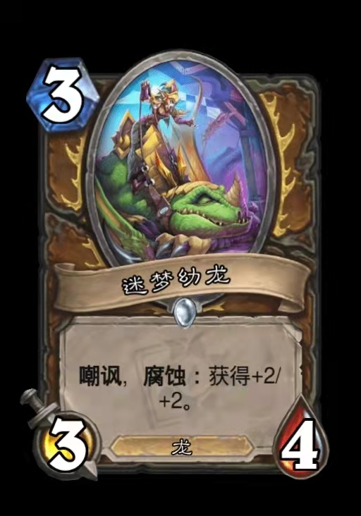 德魯伊體系之前都愛用前沿哨所,但是前沿哨所在新版本的強度非常低,而迷夢幼龍就是前沿哨所的替代品。而迷夢幼龍也是一張非常厲害的節(jié)奏單卡,搭配陣容中的不少牌也能打出非常強勢的組合效果。