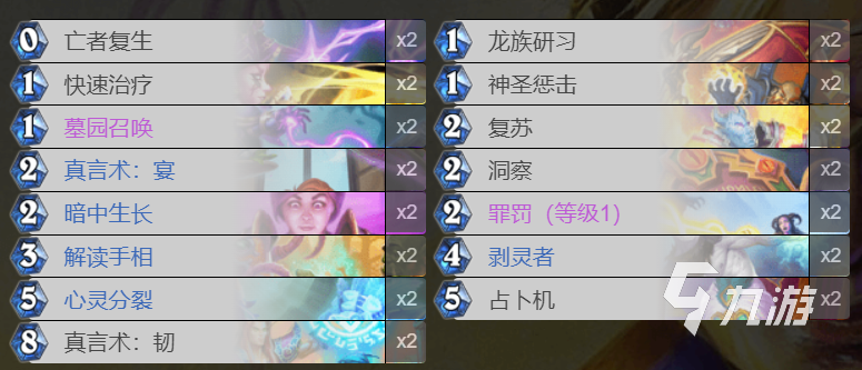 在占卜機牧的起手留牌方面,主要是以快速治療,墓園召喚,龍族研習,神圣懲擊,復蘇,洞察,罪罰(等級1),真言術:宴,暗中生長,解讀手相,心靈分裂等低費卡牌為主。