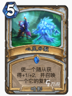 在對陣慢速卡組時,主要是通過各種buff牌來進行鋪場,給到對手壓力,而且需要注意的是盡量等心靈分裂加上占卜機的combo再打,特別是在對抗一些有變形的職業(yè)時。