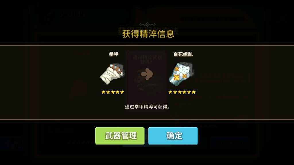 當(dāng)玩家們將上古武器準(zhǔn)備充分的時候,就可以直接進(jìn)入到武器的精粹頁面當(dāng)中,選擇一個上古武器直接進(jìn)行精粹即可。注意,在這一過程當(dāng)中玩家們會成功的得到一個拳甲,該武器才是獲取百花繚亂的核心精粹武器。所以,玩家們還需要對拳甲進(jìn)行一次精粹后,才可以直接得到百花繚亂。