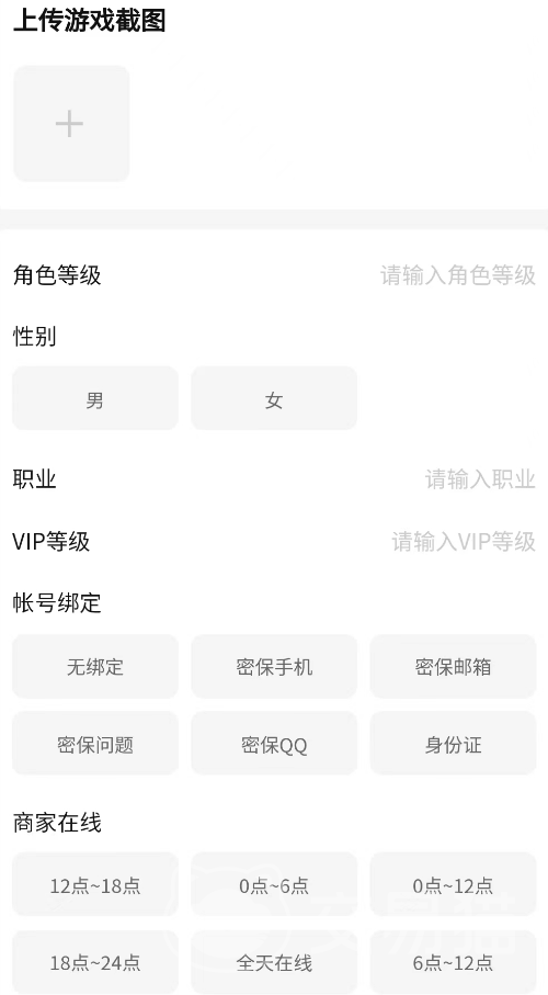 因為這款游戲體量比較大,在許多細(xì)節(jié)上三言兩語很難說的清楚,所以平臺就干脆讓賣家自己上傳截圖,這樣你就能盡可能展現(xiàn)賬號的亮點,并提前說明賬號的綁定情況以及自己的在線情況,這樣就不會影響你的正常生活且同步高效出售賬號。