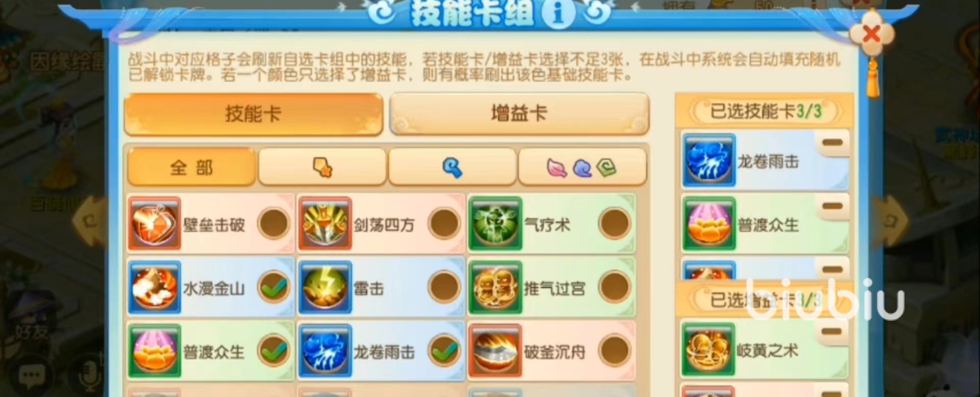 這套陣容的面?zhèn)浅=o力,撿輸出技能前別忘了撿增益技能,有龍卷雨擊、飛沙走石兩大群傷技能,兩回合的群攻一般都是可以解決戰(zhàn)斗的。