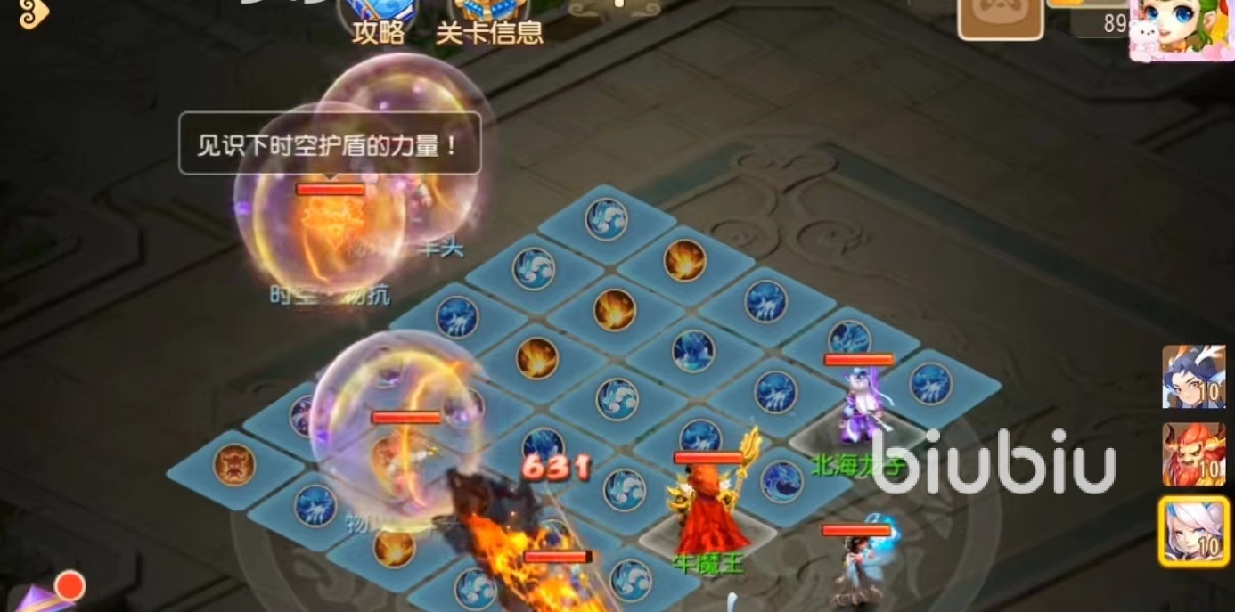 該關(guān)卡的怪物會(huì)附加物理時(shí)空的護(hù)盾,也就是說(shuō)三個(gè)怪物均為物抗怪。且想要三星過(guò)關(guān),需要在2回合內(nèi)解決戰(zhàn)斗。