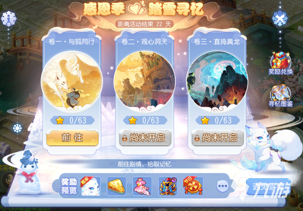 通過(guò)這些星星玩家可以兌換高級(jí)法寶、法寶精華、限時(shí)時(shí)裝等??偟膩?lái)說(shuō)目前感恩季總共開(kāi)放了3個(gè)劇情,分別是:卷一,與狐同行,卷二.觀心洞天,卷三,直搗黃龍。