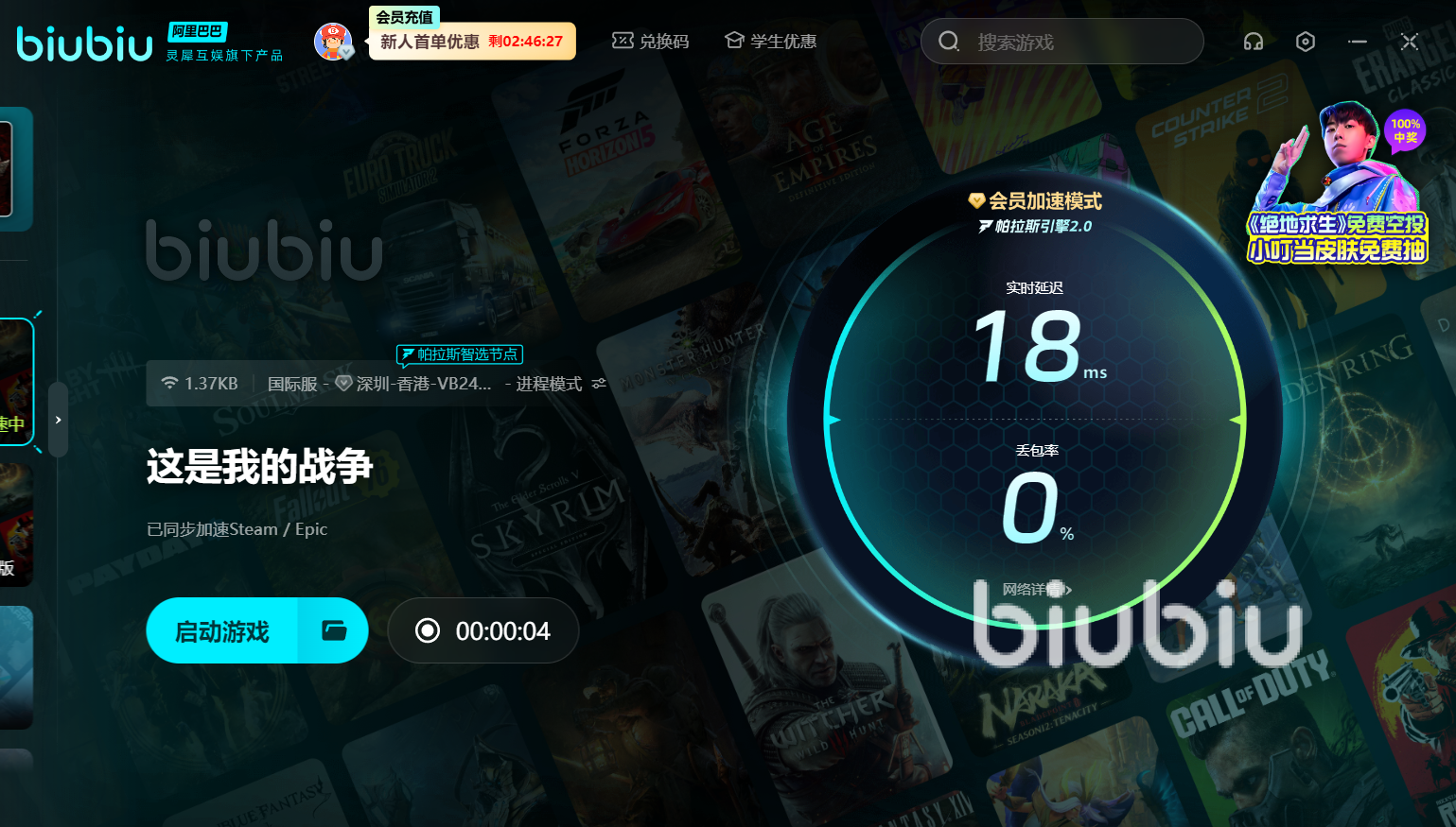 所以對(duì)于“這是我的戰(zhàn)爭閃退卡頓怎么辦”這一個(gè)問題,大部分的玩家都會(huì)選擇使用Biubiu加速工具,就輕輕松松就把卡頓、閃退這些小麻煩給解決掉。還等啥呀,趕緊趁著活動(dòng)期間,點(diǎn)擊文中的鏈接去試用一下吧。