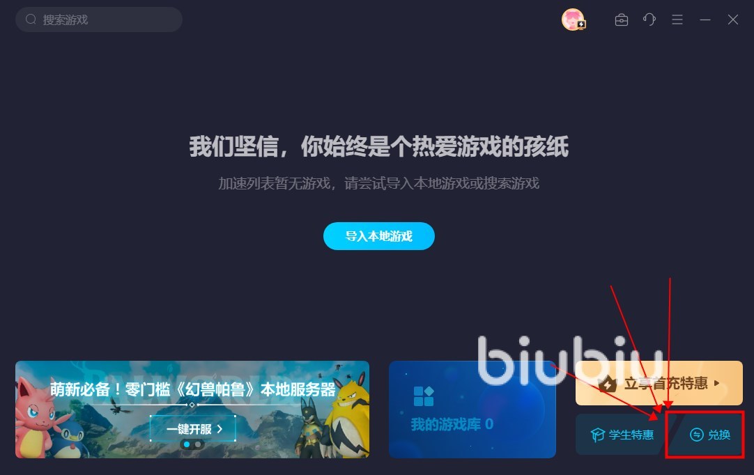 如果游戲的體量特別大,有上百個(gè)G,但家庭的網(wǎng)絡(luò)帶寬不夠,極限下載速度不夠,24小時(shí)下載不完的話也不用擔(dān)心,現(xiàn)在面向所有biubiu用戶提供了3天全平臺(tái)會(huì)員兌換碼,只需在兌換的窗口中輸入“biubiu不卡頓”就可以領(lǐng)取。