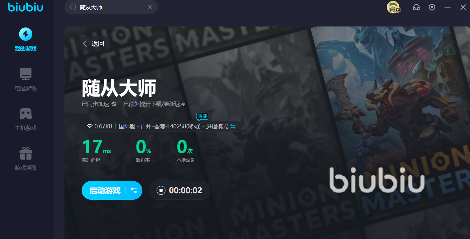相信大家看完小編的介紹后,已經(jīng)知道隨從大師卡頓怎么辦了吧!隨從大師游戲既有卡牌收集元素,也有靈活多變的塔防玩法,相信使用biubiu加速器就能幫到你優(yōu)化網(wǎng)絡(luò),告別卡頓。