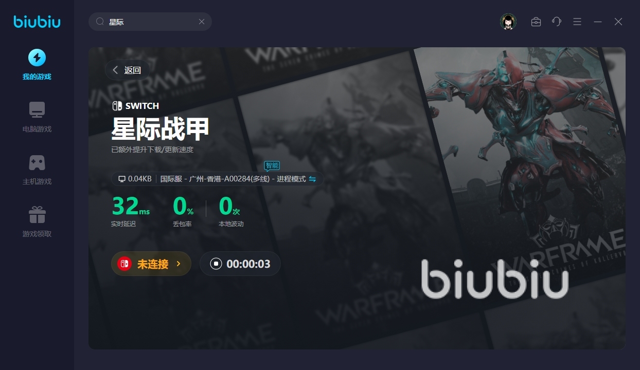 來源: 極光 作者: 果果 2024年02月28日 14:43很多玩家對于這款多人合作的科幻動(dòng)作游戲很是喜歡,里面擁有許多的射擊元素,同時(shí)也是為大家準(zhǔn)備了很多的機(jī)甲讓各位去選擇,今天小編主要是和大家說說星際加速器推薦,單單說星際大家可能不熟悉,但是全稱星際戰(zhàn)甲小伙伴們應(yīng)該也就清楚了,這款游戲在戰(zhàn)斗的時(shí)候是需要聯(lián)網(wǎng)的,如果大家的網(wǎng)絡(luò)不夠穩(wěn)定肯定不行,所以建議可使用biubiu來運(yùn)行。