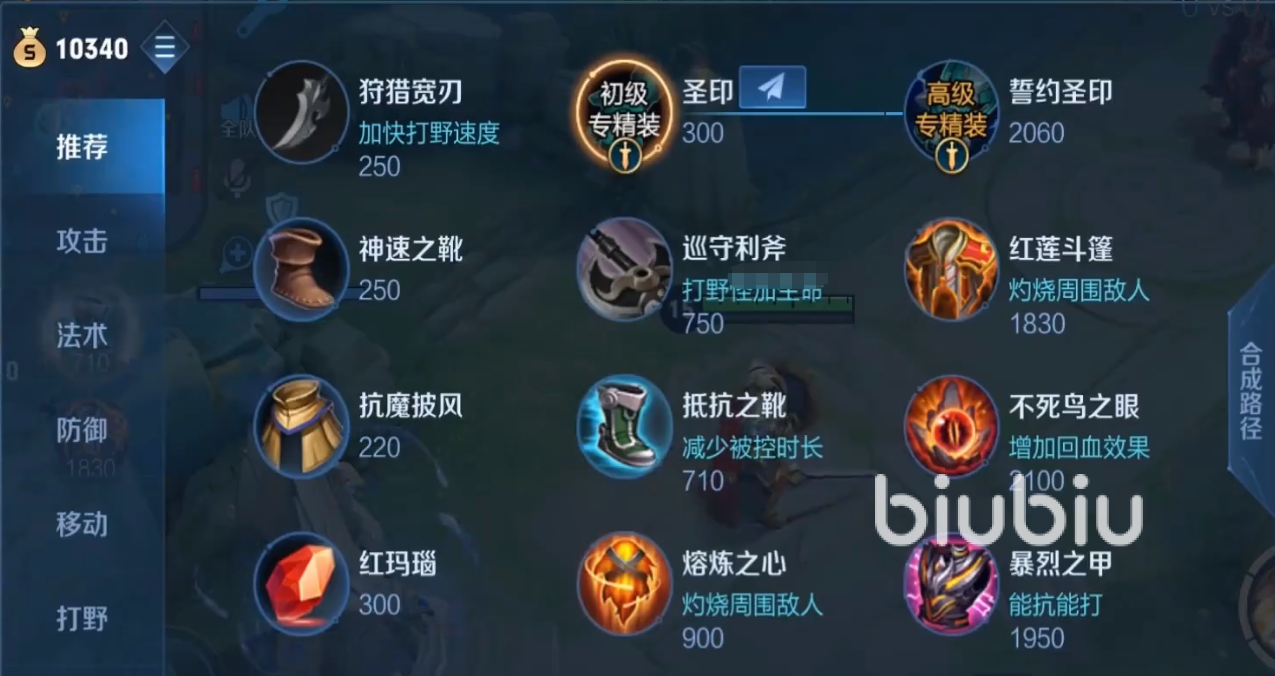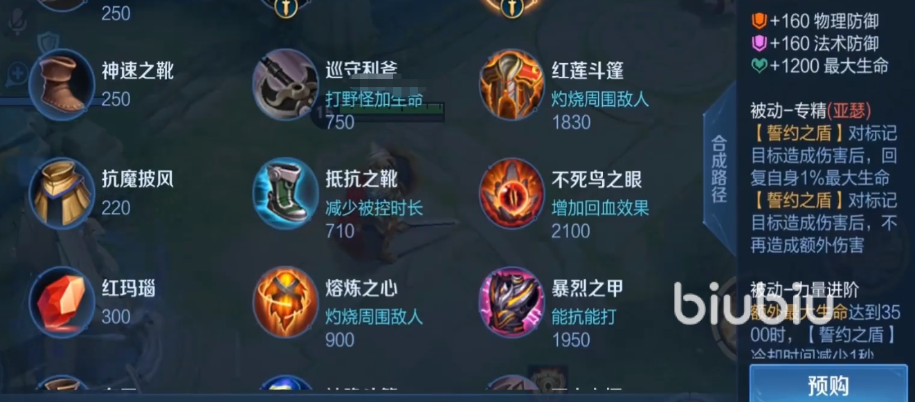 首先來談?wù)劤跫壯b備的效果,游戲一開始用300金幣即可購買。能夠獲得誓約之盾的專精效果,對標(biāo)記目標(biāo)造成傷害后會回復(fù)自身的生命值,也就是說提升了它的續(xù)航能力。只要他一直粘著敵人跑的話,就不需要擔(dān)心被人快速的擊殺。這時候可以搭配一件不死鳥之眼,就能不斷回復(fù)自身生命值,堪比程咬金。