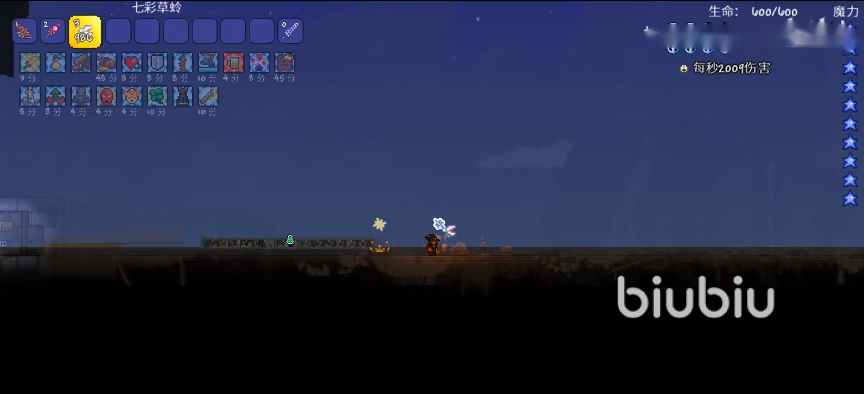 七彩草蛉是1.4更新后出現(xiàn)的一種中立生物,下圖中角色左上角閃爍著七彩虹光的就是它。七彩草蛉雖然沒有任何攻擊性,但是它的刷新要求非??量蹋浩卟什蒡戎挥性诿刻煲雇淼钠唿c半到九點半(游戲內(nèi)時間),玩家處在神圣之地的世紀(jì)之花旁邊(世紀(jì)之花就是下圖中緋紅色的樹木),且位于地表之上,滿足上面三個條件后才有可能刷新出七彩草蛉。