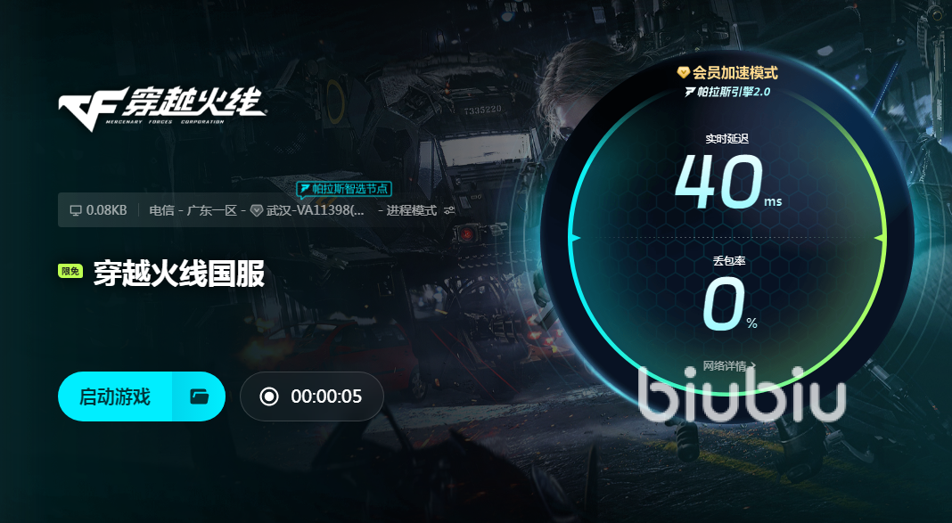 射擊戰(zhàn)斗游戲?qū)τ诰W(wǎng)速要求較高,穿越火線cf也是如此。畢竟戰(zhàn)場(chǎng)上局勢(shì)隨時(shí)變化,一切都是瞬息萬(wàn)變。玩家保證游戲流暢,提前安裝好加速工具biubiu,改善網(wǎng)速慢、丟包等問(wèn)題,才能獲得良好游戲體驗(yàn)。用戶在游戲庫(kù)中搜索名稱,找到穿越火線國(guó)服版本,立即加速。