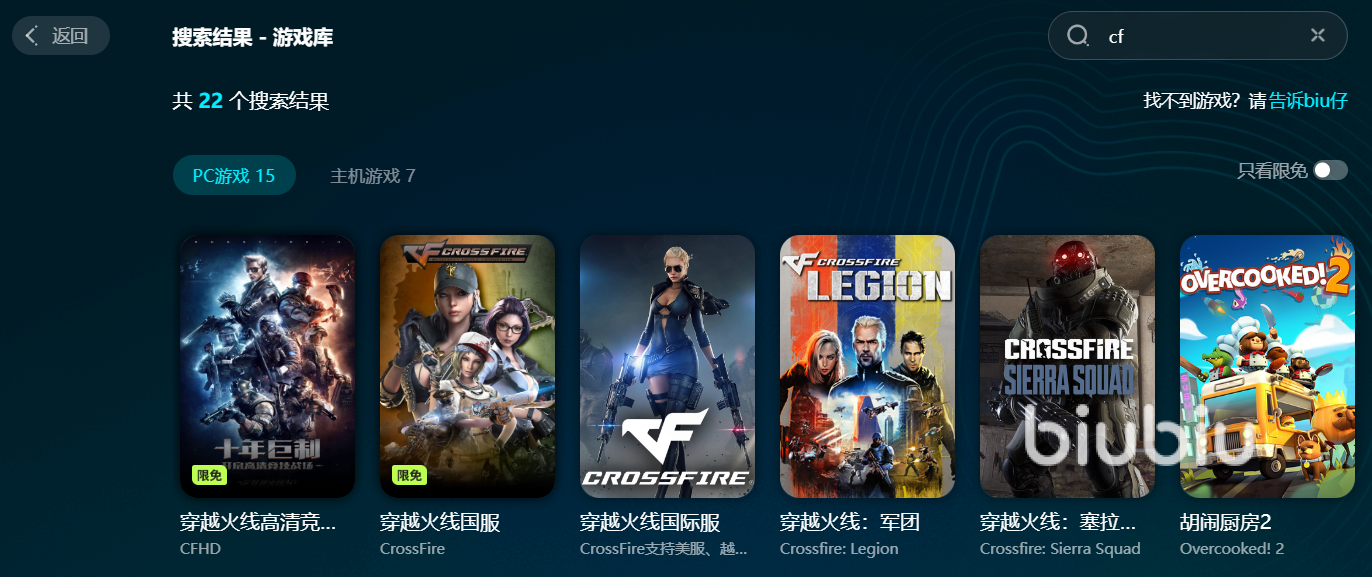 第三,biubiu長(zhǎng)期免費(fèi)專區(qū),這里以主機(jī)游戲和國(guó)內(nèi)端游為主,其中包括許多熱門(mén)游戲,比如夢(mèng)幻西游、我的世界外服等。