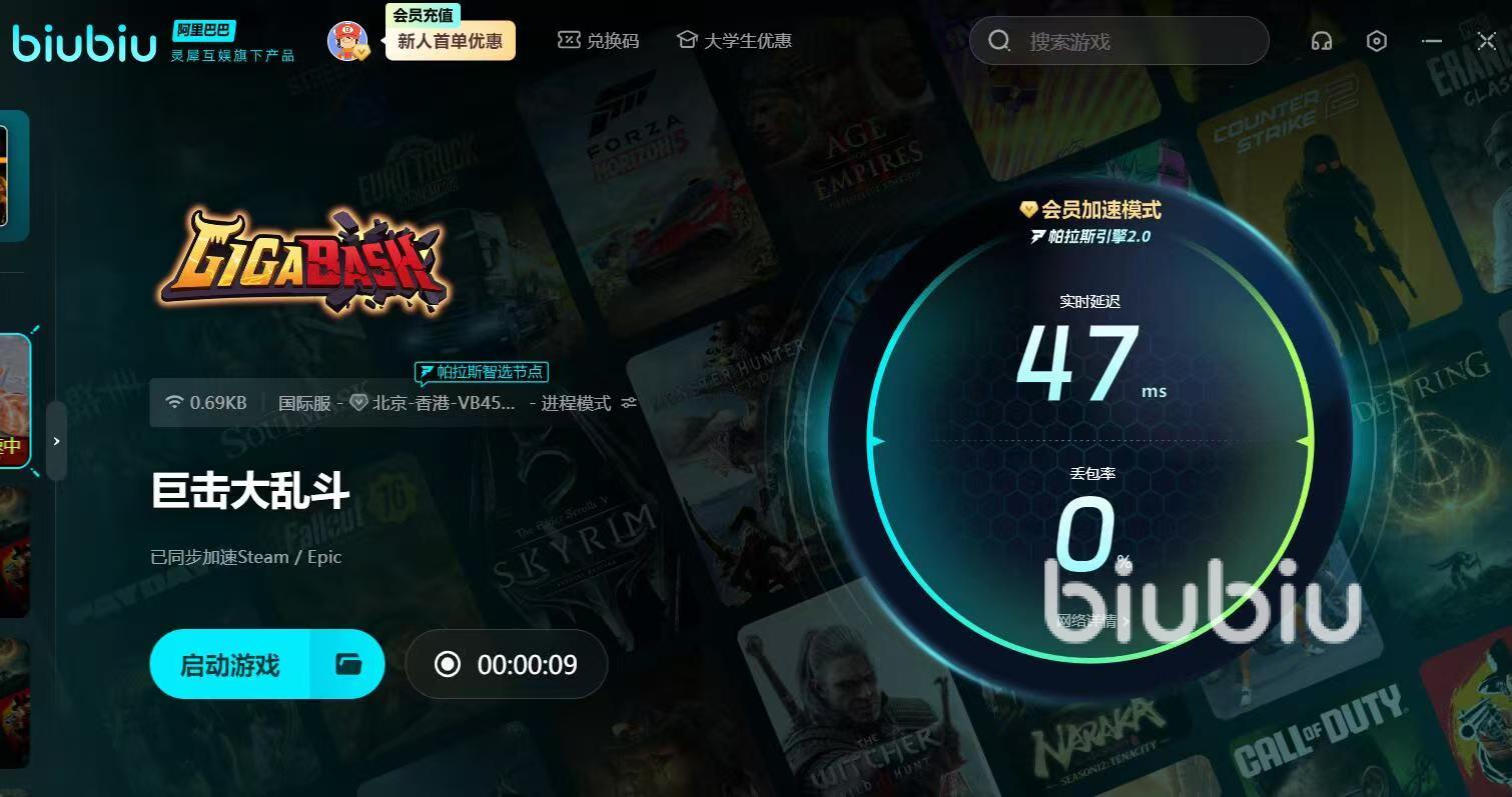 我們使用biubiu加速器就可以搞定這個問題了,現(xiàn)在它是給新人免費使用24小時加速時間的,另外兌換碼活動也是在開展的,用【biubiu不掉線】就能換取額外的72小時加速時間哦,新人等于一起可以用的免費時長是96小時的。