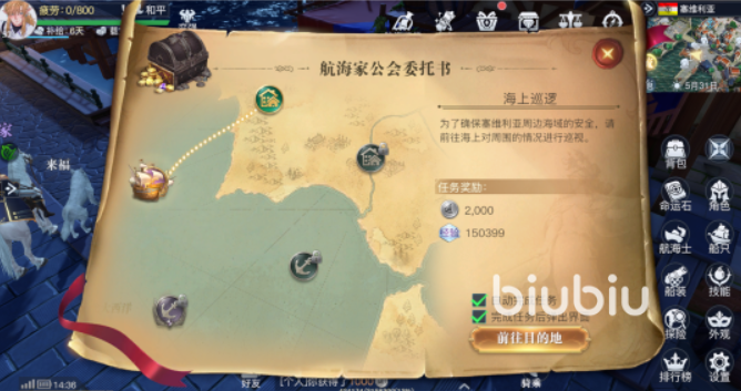 首先是每日活動(dòng)中最基礎(chǔ)同業(yè)委托任務(wù),玩家等級(jí)達(dá)到10級(jí)即可解鎖,玩家可在活動(dòng)界面內(nèi)點(diǎn)擊自動(dòng)尋路航海家公會(huì)總管處接取每日的同業(yè)委托任務(wù)。