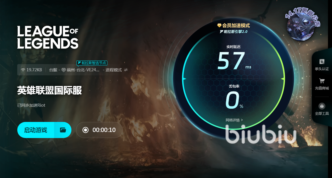 看完小編介紹的這些內(nèi)容后,大家應(yīng)該就清楚lol畫面卡頓怎么辦了吧,不僅僅是可以解決畫面卡頓這樣的問題,游戲過程中的其他一些網(wǎng)絡(luò)情況例如閃退,掉幀等。也都可以在使用biubiu之后同步解決,完全可以成為玩游戲的好幫手。