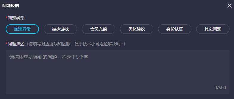 除此之外對(duì)平臺(tái)有任何建設(shè)性意見的玩家,也可以通過問題反饋功能來發(fā)表內(nèi)容。目前大家可以根據(jù)加速當(dāng)中遇到的問題和平臺(tái)所不支持的游戲以及各種優(yōu)化措施提出建議,一旦平臺(tái)從采納就會(huì)很快進(jìn)行調(diào)整,玩家也會(huì)因此享受到更好的加速服務(wù)。