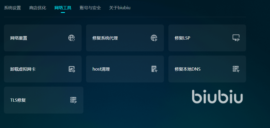 很多小伙伴平時(shí)還玩其他的游戲,涉及多個(gè)游戲平臺(tái),這些都在biubiu的加速范圍內(nèi)。大家如果遇到網(wǎng)頁(yè)無(wú)法加載或者是加速無(wú)效這些情況,可以打開biubiu工具箱修復(fù)它們,工具箱里的工具又多又全面,輕松修復(fù)網(wǎng)卡故障還玩家一個(gè)全新的游戲環(huán)境。