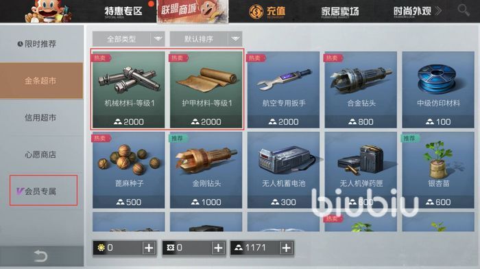 其中分別有特惠專區(qū)、聯(lián)盟商店、充值、家具賣場、時尚外觀,你們點擊里面的聯(lián)盟商場,此時右邊將出現(xiàn)很多不同的商品,選擇會員專屬里可以發(fā)現(xiàn)很多零件,不過他們也是有數(shù)量限制的,直接拉滿就行,最后一個是和教官進行買賣,也可以直接獲得。