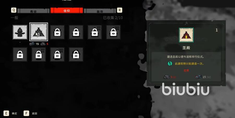 成功的收集到了資源之后,大家就可以在家園當(dāng)中選擇一個(gè)合適的地點(diǎn)來(lái)修建圣殿,圣殿的修建過(guò)程會(huì)消耗一點(diǎn)時(shí)間,不過(guò)玩家的教徒數(shù)量越多的話,圣殿的修建數(shù)量就會(huì)越快,因?yàn)檫@些教徒會(huì)加入到圣殿的修建過(guò)程。一旦成功的完成了圣殿的建造,那么玩家們也將正式解鎖布道和頒布戒規(guī)的功能。