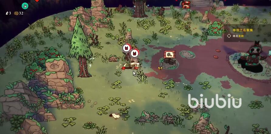 開(kāi)始收集資源的過(guò)程當(dāng)中,玩家需要擁有5塊石頭和15個(gè)木材,這些基礎(chǔ)材料剛好可以直接在家園當(dāng)中獲取。各位可以操控自己的角色,去攻擊樹(shù)木或者地圖當(dāng)中的石頭,將其打碎之后就可以得到一定數(shù)量的材料。這個(gè)過(guò)程如果想要自動(dòng)完成的話,大家只需要讓教徒來(lái)執(zhí)行收集資源的命令即可,數(shù)量較多的教徒可以更快完成。