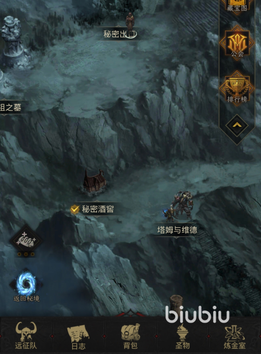 小編先介紹下,我們?cè)诘叵鲁潜?常用的兩個(gè)地圖,一個(gè)是推圖地圖,一個(gè)是招魂師的秘境地圖。這兩個(gè)地圖可以通過(guò)左下角的時(shí)空洞進(jìn)行切換。