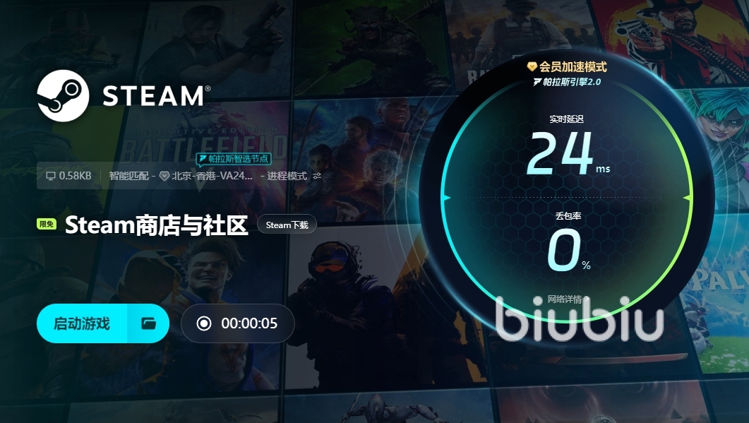 而且biubiu也會(huì)提供智能化的多節(jié)點(diǎn)加速技術(shù),幫助玩家們選擇最優(yōu)質(zhì)的節(jié)點(diǎn),避免在連接過程中出現(xiàn)數(shù)據(jù)傳輸過于擁堵的情況,也能有效的降低延遲、丟包的現(xiàn)象。點(diǎn)擊加速的詳情界面,大家還能看到不同的加速內(nèi)容,包括當(dāng)前的延遲、丟包率都能更直觀的看到,就拿龍騰世紀(jì)起源這款游戲舉例子,它是steam上面的游戲,我們是可以直接在這個(gè)平臺內(nèi)加速steam的,加速結(jié)束啟動(dòng)steam平臺,在其中和字節(jié)開啟游戲就可以了,不論是下載、更新還是參與游戲戰(zhàn)斗都會(huì)比之前更加順利。后期不想體驗(yàn)了,直接在此界面關(guān)閉,停止加速即可,效率很高,隨用隨開,非常的方便。