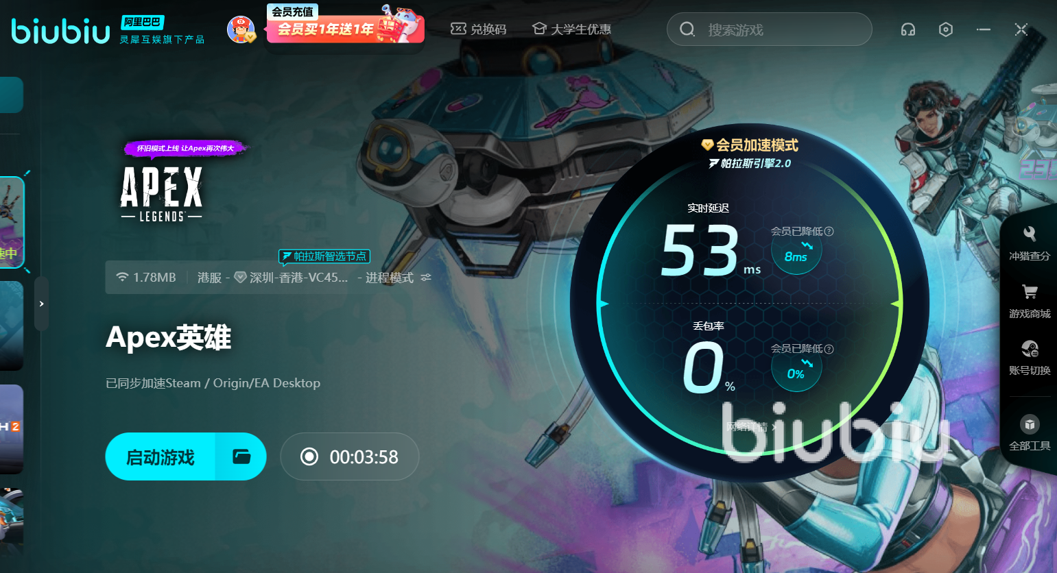 當(dāng)然,光說好用很多玩家還是不會(huì)相信,只有自己用過才能體驗(yàn)到它的效果。現(xiàn)在就是發(fā)放給大家免費(fèi)試用的福利,讓各位都能去感受一下再做決定。超長的72小時(shí)可以用【biubiu不掉線】這個(gè)暗號兌換得到。另外,新用戶注冊登錄后,還有額外的24小時(shí)會(huì)員等你拿。兩者搭配使用,總共可獲得高達(dá)96小時(shí)的免費(fèi)時(shí)長,足夠你體驗(yàn)一場又一場緊張刺激的戰(zhàn)斗了。