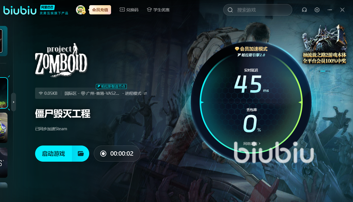 如果我們不想要見到僵尸毀滅工程閃退的話,必須借助biubiu的力量。加速后才能穩(wěn)定展開自救行動,并努力與僵尸群拼斗,不讓所有人的努力都白費(fèi)。新用戶的話可領(lǐng)取24小時(shí)的免費(fèi)加速,另外新老玩家加入【biubiu不卡頓】,就能額外獲得三天免費(fèi)加速。另外僵尸毀滅工程目前還沒有上線國服,所以想要成為這一片世界的救世主,必須啟動加速器,才有機(jī)會降臨在這一方空間中。