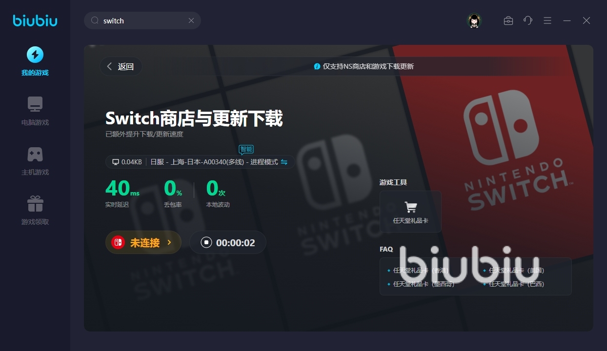 來源: 極光 作者: 果果 2024年02月06日 15:38作為任天堂開放的混合游戲機(jī),它除了非常的便捷外,里面也是匯聚了多種不同的游戲作品,讓玩家能夠去鏈接電視玩耍,其特點(diǎn)也是很鮮明,今天小編要為大家介紹的是加速器switch怎么選,畢竟要是網(wǎng)絡(luò)遇到了卡頓,或者是延遲很高的情況,那么體驗(yàn)的時(shí)候也會(huì)不暢快,因此建議各位可去考慮使用biubiu來針對(duì)它進(jìn)行連接,各位要是有想法的話,不如就來看看這款加速工具的效果究竟如何吧。
