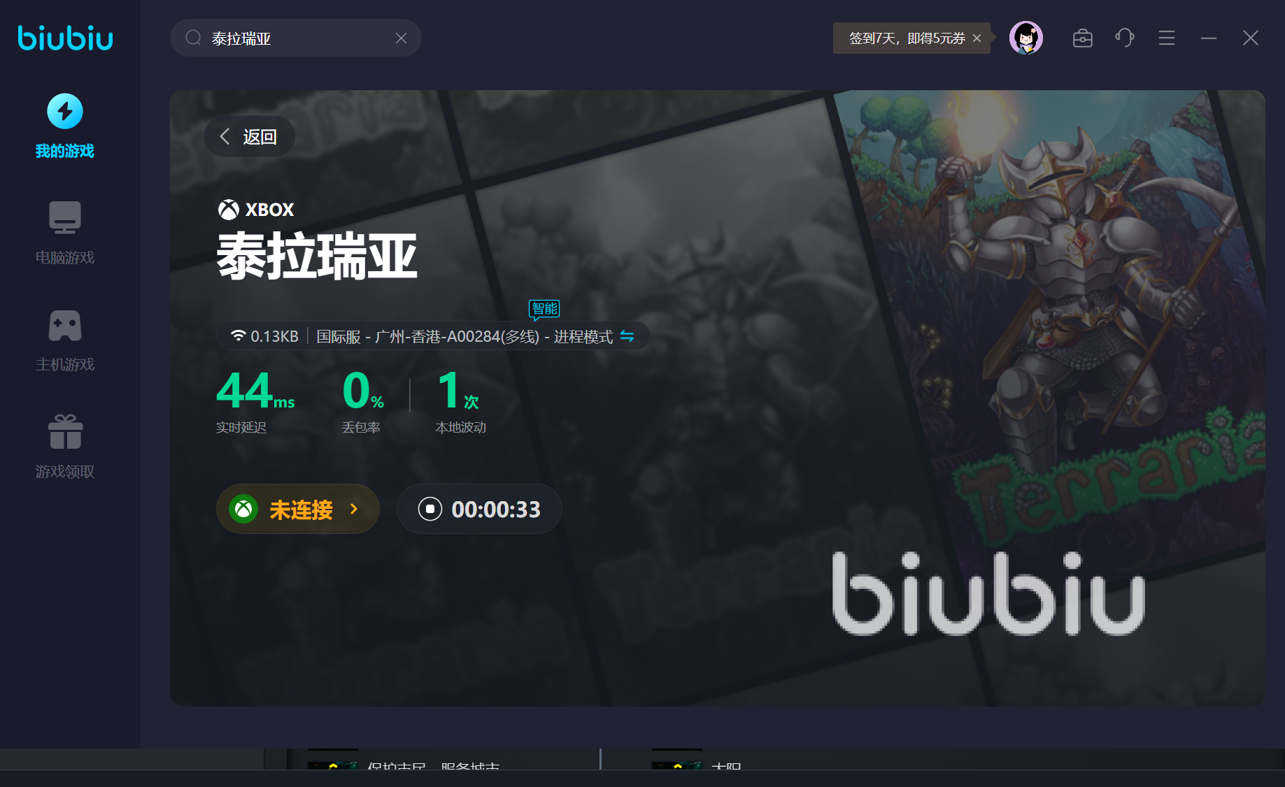 來源: 極光 作者: 李玉 2024年04月29日 18:59泰拉瑞亞是一款自由度較高的沙盒建造游戲,玩家可以發(fā)揮自己的想象力在世界中不斷組建武器或者建筑,可玩性是比較高的,但是一部分玩家在游玩的過程中出現(xiàn)掉線問題,因此就會問泰拉瑞亞掉線無法重連怎么辦?推薦使用biubiu加速器,可以很好地解決各種連接問題,提升游戲流暢度。