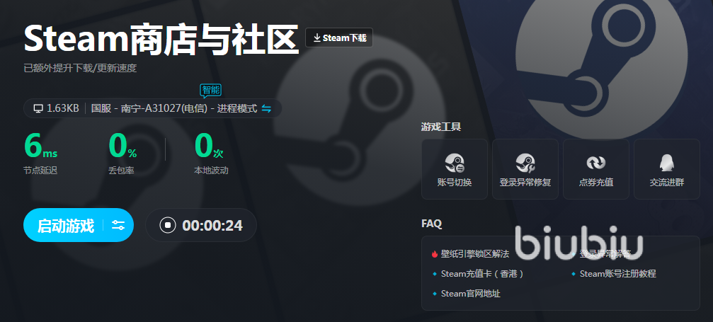 因為游戲只能在steam平臺玩,很多小伙伴雖然慕名而來,卻因為無法登錄steam或者無法訪問steam商店購買游戲而作罷,其實大家只要安裝并使用biubiu加速器,就能成功加載平臺商店,購買和下載游戲輕松玩起來。