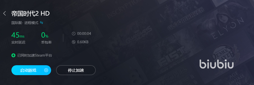 一般情況下,游戲閃退的部分原因來自于設(shè)備的硬件,玩家們可以直接通過重新安裝或者提升配置來進(jìn)行解決。不過,另一部分的原因則主要由于大家自身網(wǎng)速不太穩(wěn)定而導(dǎo)致的閃退,尤其是加入到聯(lián)機(jī)模式當(dāng)中和好友們一起對(duì)戰(zhàn)的時(shí)候,游戲?qū)W(wǎng)絡(luò)流暢度的要求就會(huì)偏高,一旦無法滿足就會(huì)出現(xiàn)閃退。想要解決這些問題的話,小編推薦大家來嘗試一下biubiu加速器,不僅針對(duì)帝國時(shí)代2可以提供穩(wěn)定的線路,還為大家提供了針對(duì)大量游戲的加速支持。