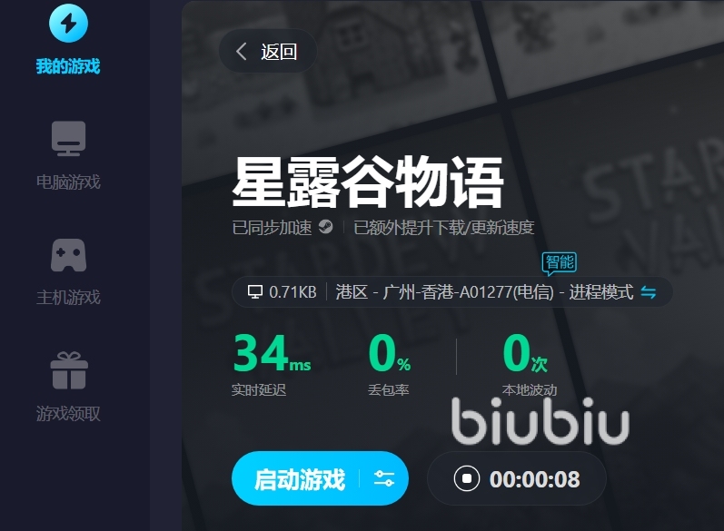 面對(duì)星露谷物語(yǔ)閃退用什么加速器好這個(gè)問(wèn)題,小編相信如果玩家選擇了biubiu加速器的話這個(gè)問(wèn)題能夠得到很好的解決。讓玩家們充分的體驗(yàn)到就算是在最高清的畫(huà)質(zhì)下,依然能夠擁有很順滑的操作和流暢度。