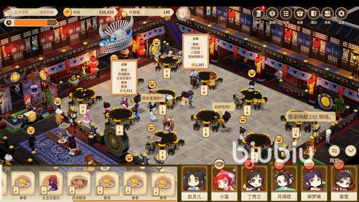 游戲當(dāng)中也是避免游戲的無(wú)聊,也是加入了不少的趣味性玩法,例如廚藝比拼以及跑堂對(duì)決等等。而且游戲當(dāng)中不同的顧客也有著不同的風(fēng)格,例如乞丐買東西便宜,老太太走路慢容易閃腰,而土豪則是有錢喜歡挑貴的買。大家可以按照自己的需求來(lái)選擇不同的顧客。
