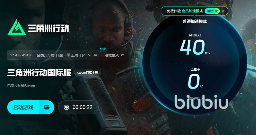大家只需要在biubiu界面上方點(diǎn)擊搜索三角洲行動(dòng)這個(gè)游戲的名字就可以找到國(guó)際服了,具體大家玩的哪個(gè)區(qū)也是可以進(jìn)行選擇的,針對(duì)性的根據(jù)服務(wù)器去進(jìn)行加速。在啟動(dòng)加速的時(shí)候,大家也可以看見(jiàn)游戲的加速情況,隨時(shí)隨地的了解自己的體驗(yàn)環(huán)境,不玩了也可以及時(shí)停止,避免占用內(nèi)存。