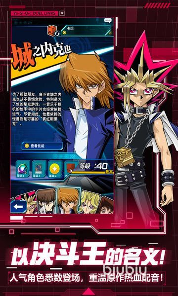 此外游戲內(nèi)的所有角色都可以通過(guò)完成任務(wù)以及劇情獲取,不同的角色有著自己的專屬能力,例如大家熟悉的武藤游戲,被動(dòng)技能有一個(gè)還是低生命值的時(shí)候可以直接拿自己想要的卡牌,跟原著當(dāng)中的天選之子抽卡一模一樣。