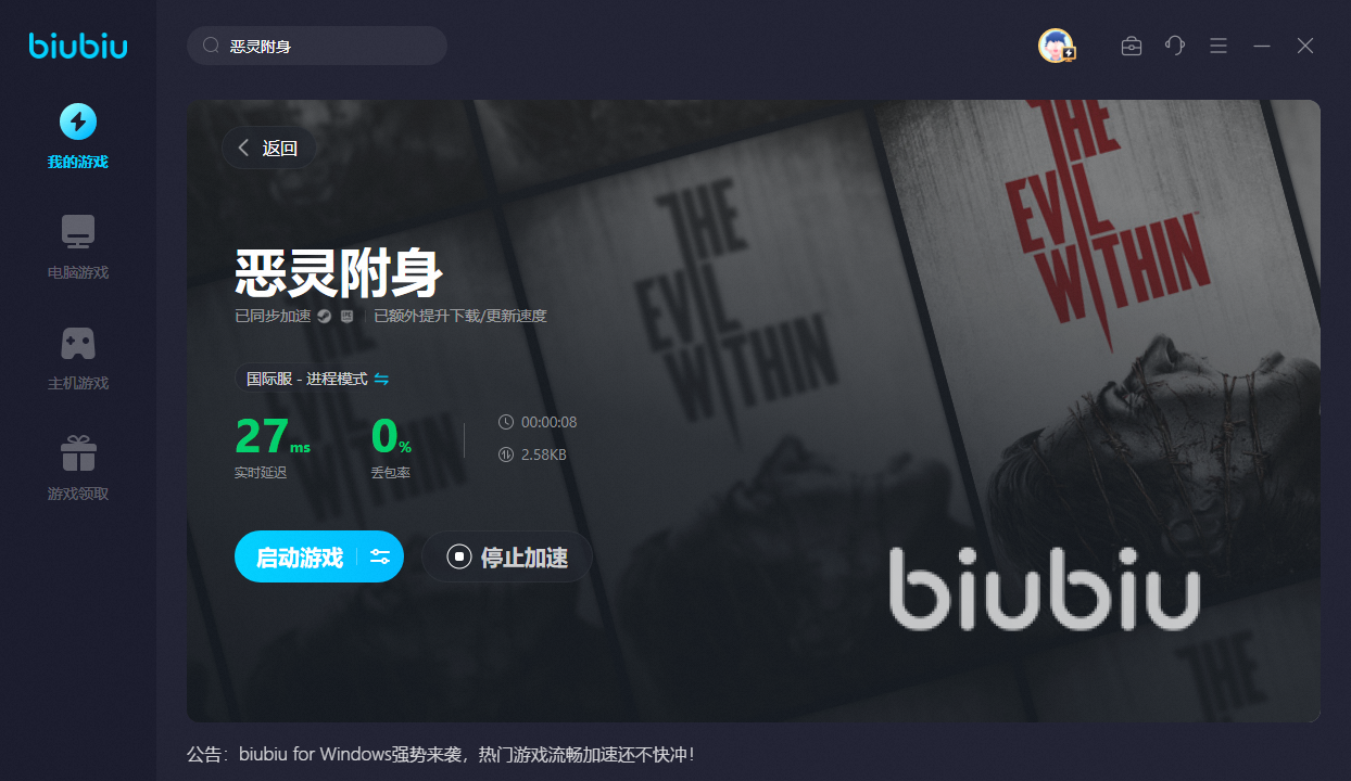 在玩這款游戲的過程中,我們可能會(huì)遇到游戲卡頓或者掉線的情況,這時(shí)候使用biubiu加速器就能夠輕松的解決問題。如果是通過小編前面描述的步驟操作的話,通過biubiu界面領(lǐng)取Epic喜加一的方式,那么在加速Epic平臺(tái)的過程中,也會(huì)同步的對(duì)游戲進(jìn)行加速。若你是新用戶的話,還可以直接免費(fèi)領(lǐng)取24小時(shí)會(huì)員加速,讓大家在玩游戲時(shí)更加流暢。