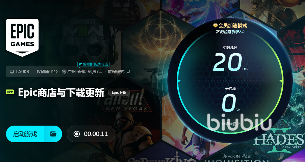 現(xiàn)在biubiu開(kāi)放了EPIC免費(fèi)加速活動(dòng),活動(dòng)長(zhǎng)期有效,只要站內(nèi)搜索Epic,就會(huì)出現(xiàn)它商店和社區(qū)的加速資源,以及一些Epic平臺(tái)游戲的加速資源。它采用一鍵啟動(dòng)加速的方式,效率高還不用自己手動(dòng)選擇節(jié)點(diǎn)。大部分玩家都是在家里或者是宿舍玩游戲的,網(wǎng)速流量沒(méi)那么高,玩游戲的時(shí)候常常有延遲,而biubiu可以改善像這樣的弱網(wǎng)環(huán)境,讓用戶體驗(yàn)飛快的網(wǎng)速,感受像電競(jìng)賽事那樣的網(wǎng)速。