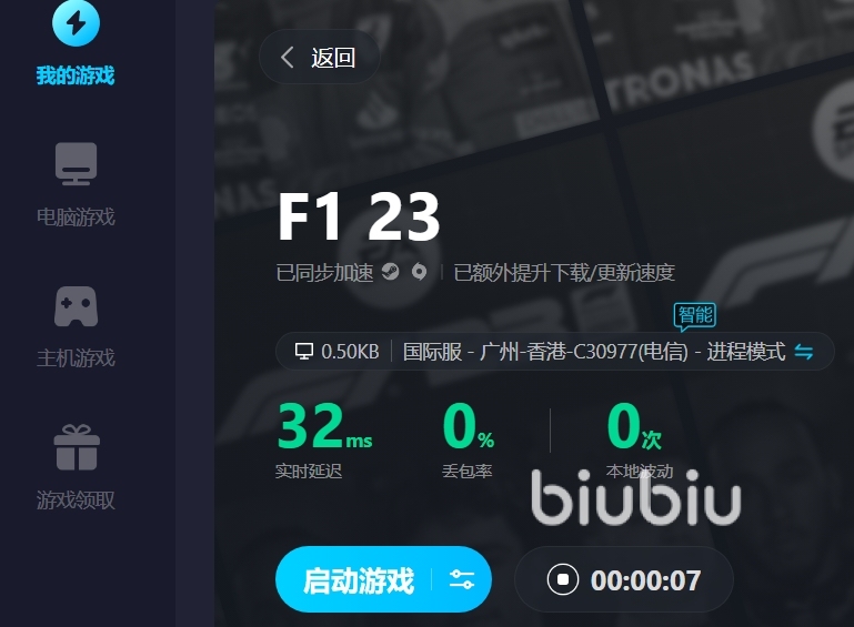 來源: 極光 作者: 小橘子 2024年02月06日 15:48作為一款全新的賽車類競(jìng)速游戲,不管是在游戲的場(chǎng)景上還是賽車手的設(shè)計(jì)上都有做出很多的新意,也讓很多喜歡競(jìng)速的玩家非常熱衷這款游戲上的競(jìng)速比賽,不過隨著玩家數(shù)量的增加,在游戲中難免出現(xiàn)問題。F123閃退怎么辦,想要在競(jìng)速類游戲中能夠獲得勝利,啟動(dòng)加速器能展示出真實(shí)的賽車競(jìng)技水平。比如說biubiu加速器的加速效果就很不錯(cuò)。