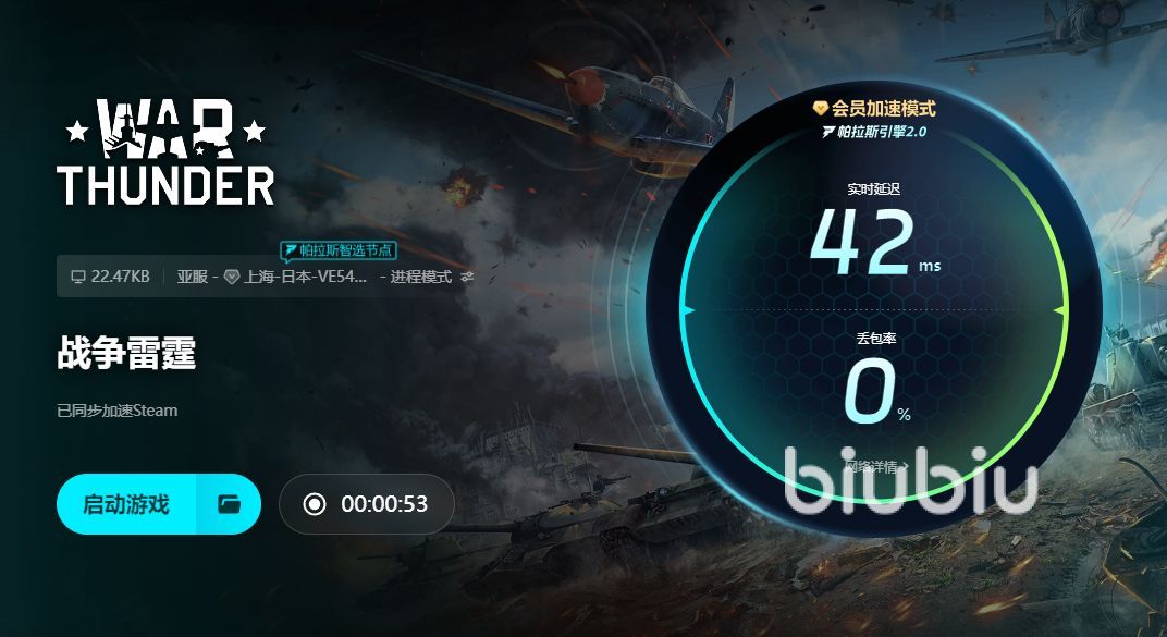 豐厚的福利也可以讓大家重新認識一下biubiu這款加速器,比如你是新人的話第一次登錄時候,就可以得到24h的vip權(quán)限,直接在搜索欄編輯戰(zhàn)爭雷霆游戲名稱一鍵啟動加速服務(wù)。兼容性高的biubiu不僅僅提供pc游戲加速服務(wù),主機游戲也是可以通過它完成網(wǎng)絡(luò)優(yōu)化服務(wù)的,想要成功的兌換三天繼續(xù)加速時間,那么【biubiu不卡頓】在編輯的時候一定要看清大小寫哦。