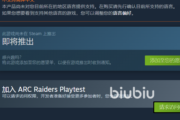 因為目前這款游戲還未開啟正式售賣,所以在各大平臺尚未出現(xiàn)購買按鈕,但是steam已經(jīng)開啟了測試活動。我們可以進(jìn)入它的商品詳情頁,然后點擊添加至您的愿望單這個按鈕,這樣在游戲如果有什么新的變動的話,平臺也會第一時間發(fā)消息通知我們。