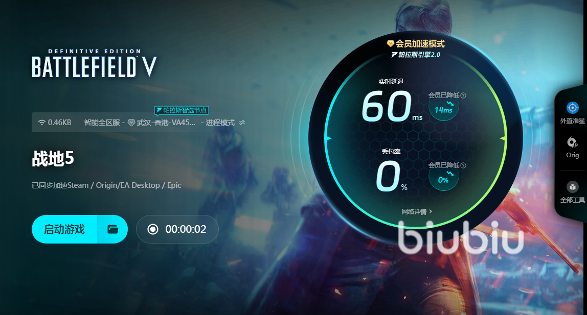 戰(zhàn)地風(fēng)云5中最大特點自身在畫質(zhì)表現(xiàn)方面非常優(yōu)秀,無論是戰(zhàn)場上出現(xiàn)破壞效果,還是彌漫硝煙以及各種人物模型和槍械建模等,都非常細(xì)膩。音效方面也很出色,爆炸聲和槍炮聲以及人物對話語音,也都達(dá)到了非常真實的效果。武器射擊時出現(xiàn)特效和火星,更是增加真實感,玩家能夠召喚豐富載具用于戰(zhàn)斗,例如坦克、飛機等,現(xiàn)代戰(zhàn)爭中常見載具,在這里都會出現(xiàn)。載具的加入,也增加了更多趣味性和策略性,玩法方面非常出色,但是服務(wù)器卻容易出現(xiàn)體驗不佳的情況,尤其是在線玩家人數(shù)比較多的時候,更是容易出現(xiàn)登錄不上甚至直接閃退。解決這些問題,可以通過biubiu加速器優(yōu)化功能來實現(xiàn)。如果用戶之前沒有使用過biubiu,那么抓緊注冊一個新賬號,現(xiàn)在打開biubiu就能立即獲得24小時加速時間,這樣的福利新人絕對不要錯過。