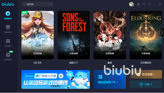 下載完成了以后,玩家可直接進入應用當中,它支持海量的游戲,在很多游戲,因為網(wǎng)絡而出現(xiàn)的卡頓掉線延遲,甚至是加載緩慢等問題。通過加速以后可讓游戲網(wǎng)絡更穩(wěn)定,有效改善會影響游戲體驗的網(wǎng)絡問題。在玩QQ飛車的時候通過使用biubiu加速器也有非常好的效果,在駕駛汽車的過程當中能正確地操作,在過彎或者是開局的時候都能憑借好的網(wǎng)絡,讓自己更有機會獲得很好的成績。