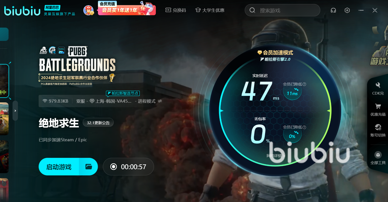 沒用過的朋友可能不相信它的效果,因此biubiu慷慨送出了免費(fèi)福利給到每一位玩家,讓大家都能自己體驗(yàn)效果。暗號(hào)【biubiu不掉線】就可以直接兌換72小時(shí)的免費(fèi)時(shí)間。若是首次注冊(cè),更有額外24小時(shí)的會(huì)員,兩者疊加使用,總共能享受到整整96小時(shí)的暢快加速,足夠你體驗(yàn)幾場(chǎng)酣暢淋漓的吃雞大戰(zhàn)了!