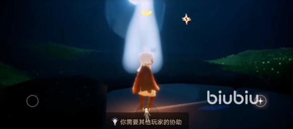 接著在下圖所示的位置處,小伙伴們要和另一個同伴一起跺腳,激活機關(guān),然后繼續(xù)前行,就能在對面石臺上看到紅耳機先祖了。