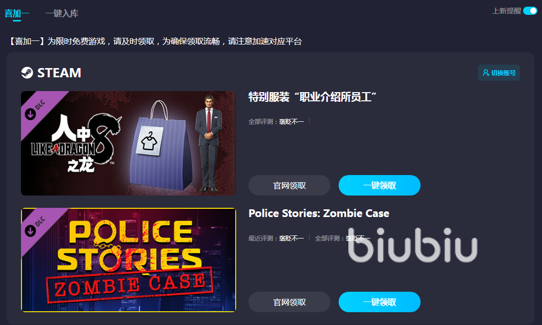 豐富的福利也是小編推薦biubiu的重要原因,除了新用戶和兌換碼免費(fèi)試用的福利外,大家還能在平臺里找到限免加速的游戲來玩。大家在游戲領(lǐng)取板塊還能領(lǐng)到免費(fèi)的游戲,biubiu每隔一段時間就會更換免費(fèi)贈送的游戲,大家經(jīng)常點(diǎn)開看看就不會錯過了。