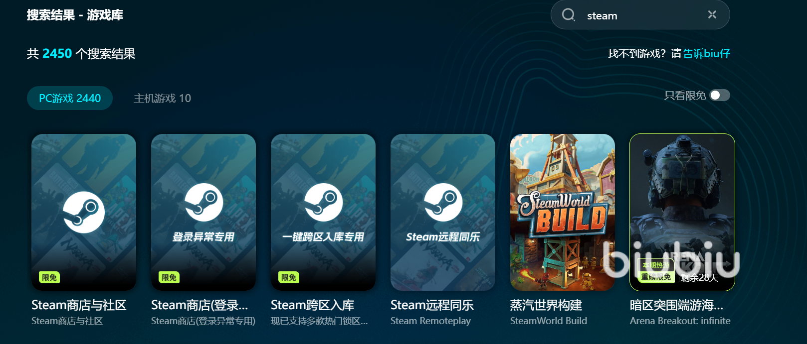 大家在使用steam的過(guò)程當(dāng)中,很多小伙伴們都反應(yīng)卡頓掉幀等狀況,其實(shí)這些問(wèn)題都是因?yàn)榫W(wǎng)絡(luò)環(huán)境不穩(wěn)定導(dǎo)致的,大家同時(shí)擠進(jìn)一個(gè)系統(tǒng),難免會(huì)有一些不穩(wěn)定的狀況發(fā)生。那么今天小編為大家介紹的biubiu加速器這個(gè)加速平臺(tái)可以幫助大家緩解這個(gè)問(wèn)題,提升大家的游戲體驗(yàn),那么關(guān)于biubiu加速器的詳細(xì)介紹,大家還需要再觀看觀看哦