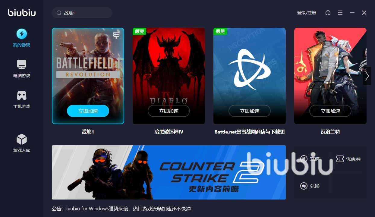 戰(zhàn)地1作為16年推出的游戲,火爆程度經(jīng)久不衰,在各種各樣的促銷活動后,2023年的今天戰(zhàn)地仍然在不斷吸收著新鮮血液,在線人數(shù)仍然居高不下,那么各位新入坑的小伙伴在游玩的過程中是否經(jīng)常性的發(fā)生丟包,瞬移,卡頓等現(xiàn)象呢!小伙伴們不用著急,在使用了小編推薦的biubiu加速器后,這些問題都將瞬間解決!接下來就由小編來為大家好好介紹吧!