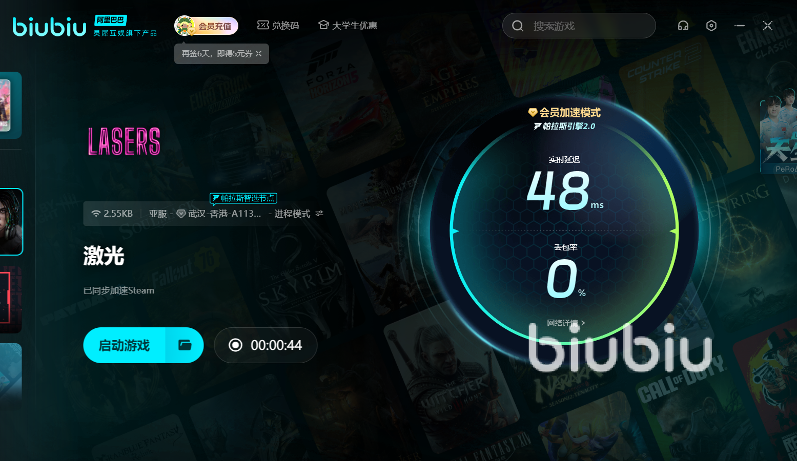 目前這個加速器當中所包含的游戲庫資源相當豐富,大家可以直接通過游戲庫或者我的游戲當中找,直接搜索也是非常方便的操作。這其中大家還比較關注的一點就是限免加速體驗服務,雖然激光這款游戲在目前的加速器當中沒有給大家提供加速服務,想要知道目前哪些游戲有大家可以到限免池當中看看,那就說明在目前的時間段內(nèi),帶限免字樣的游戲可以給大家提供免費的加速服務。這樣也能減少免費時長的支出,也不用大家去充錢。